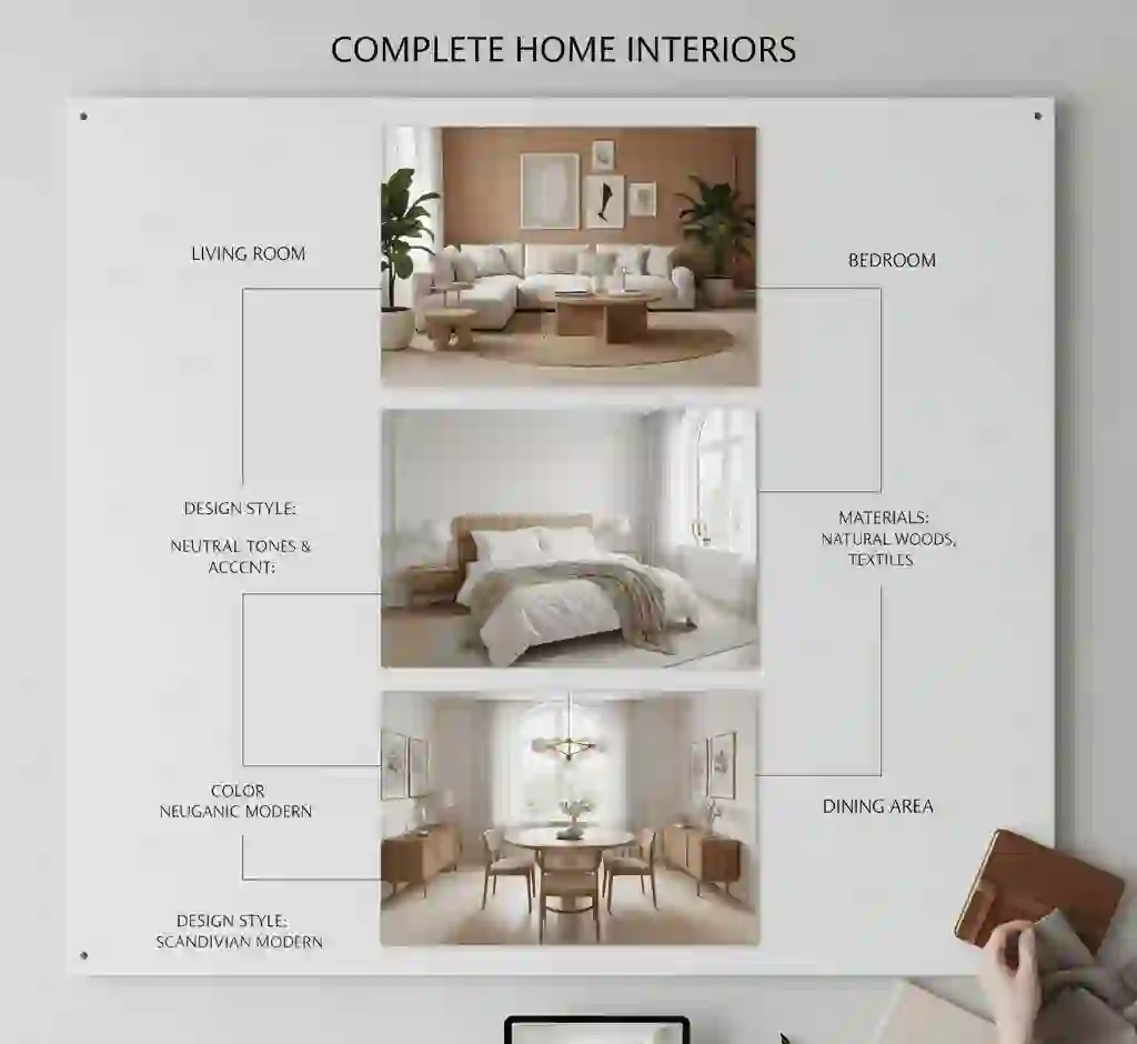 We design the heart of your home by creating harmonious and functional interiors for your living room, bedroom, and dining areas, perfectly tailoring each space for socializing, rest, and connection.
