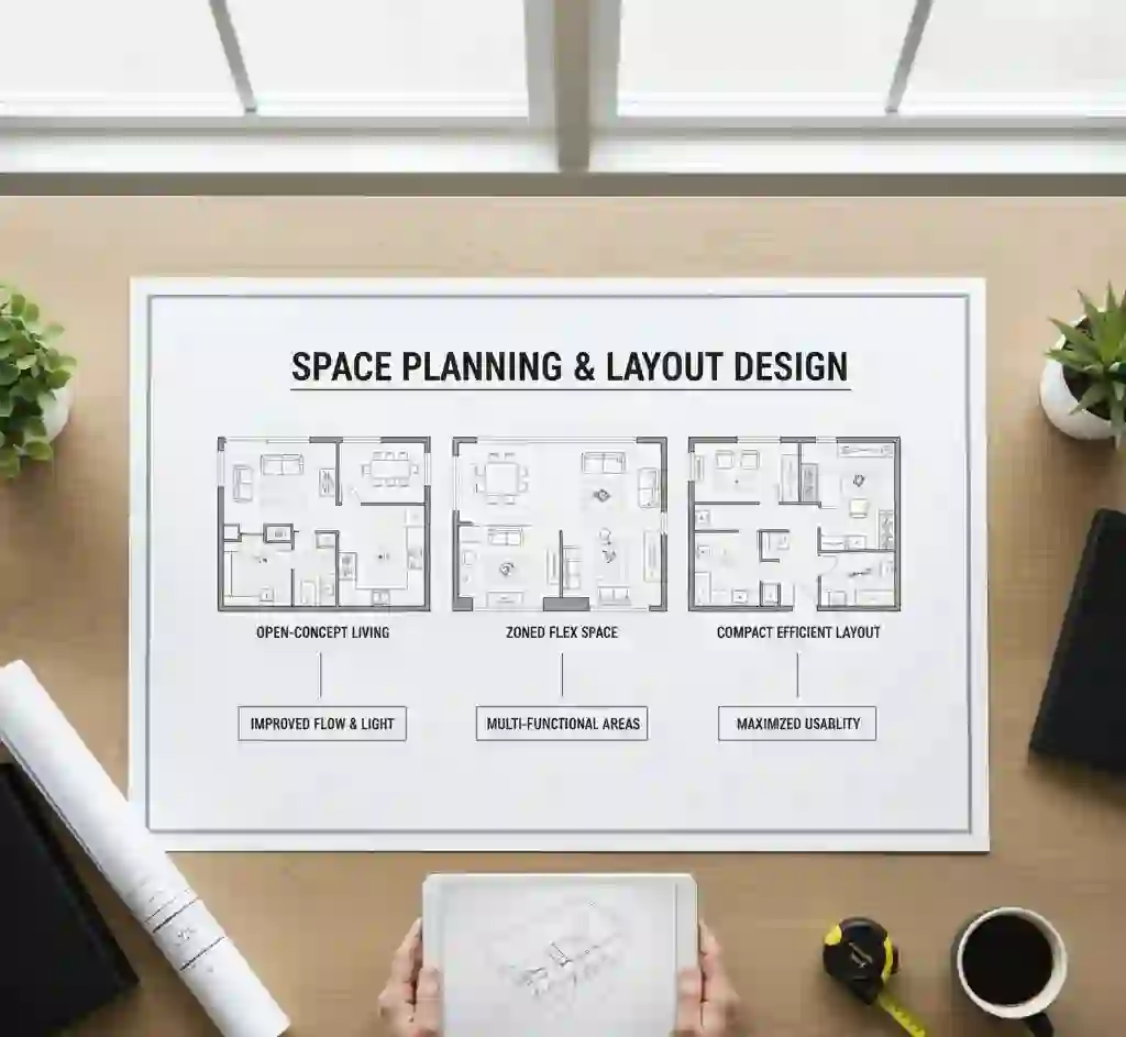 Space planning and layout design is the foundational blueprint for your Visakhapatnam home, where we strategically arrange every element to create an efficient, Vastu-compliant, and harmonious flow that maximizes the potential of your space.
